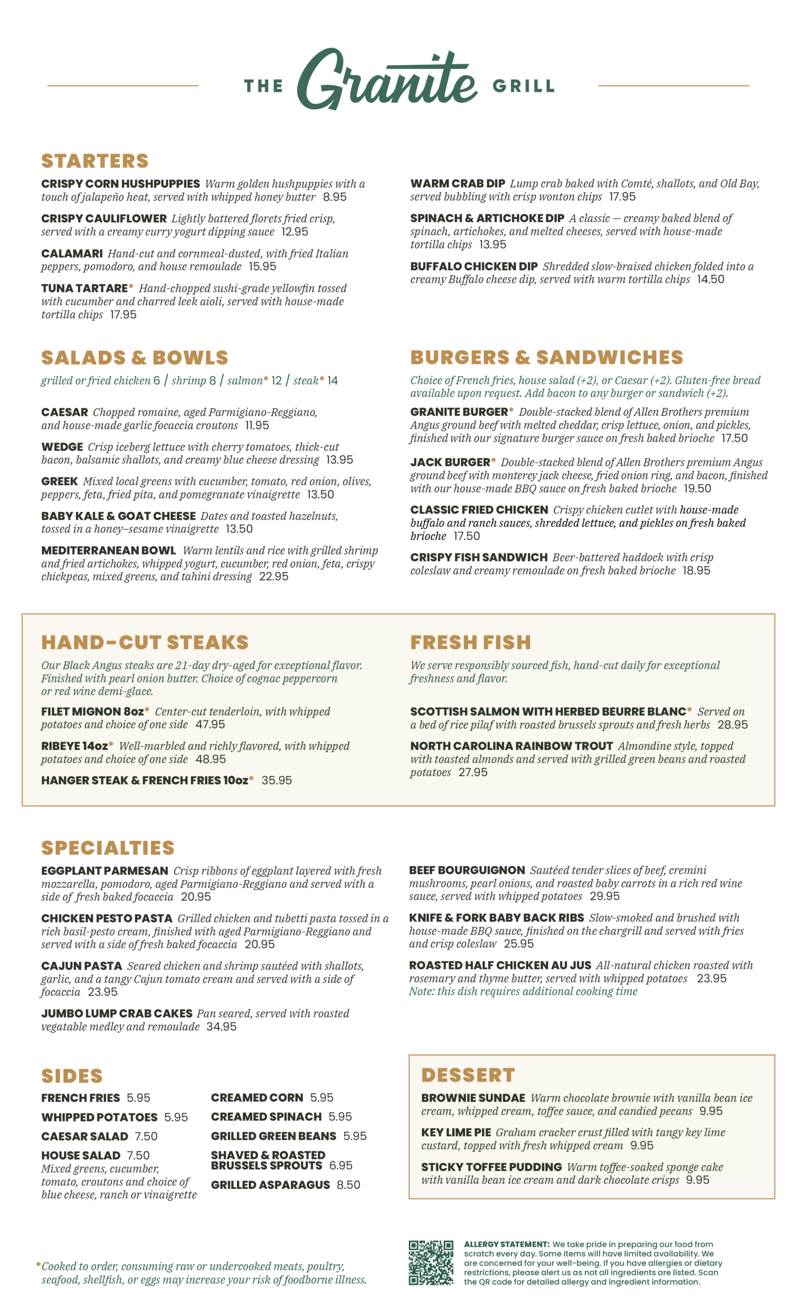 * Consuming raw or undercooked meats, poultry, seafood, shellfish, or eggs may increase your risk of foodborne illness
