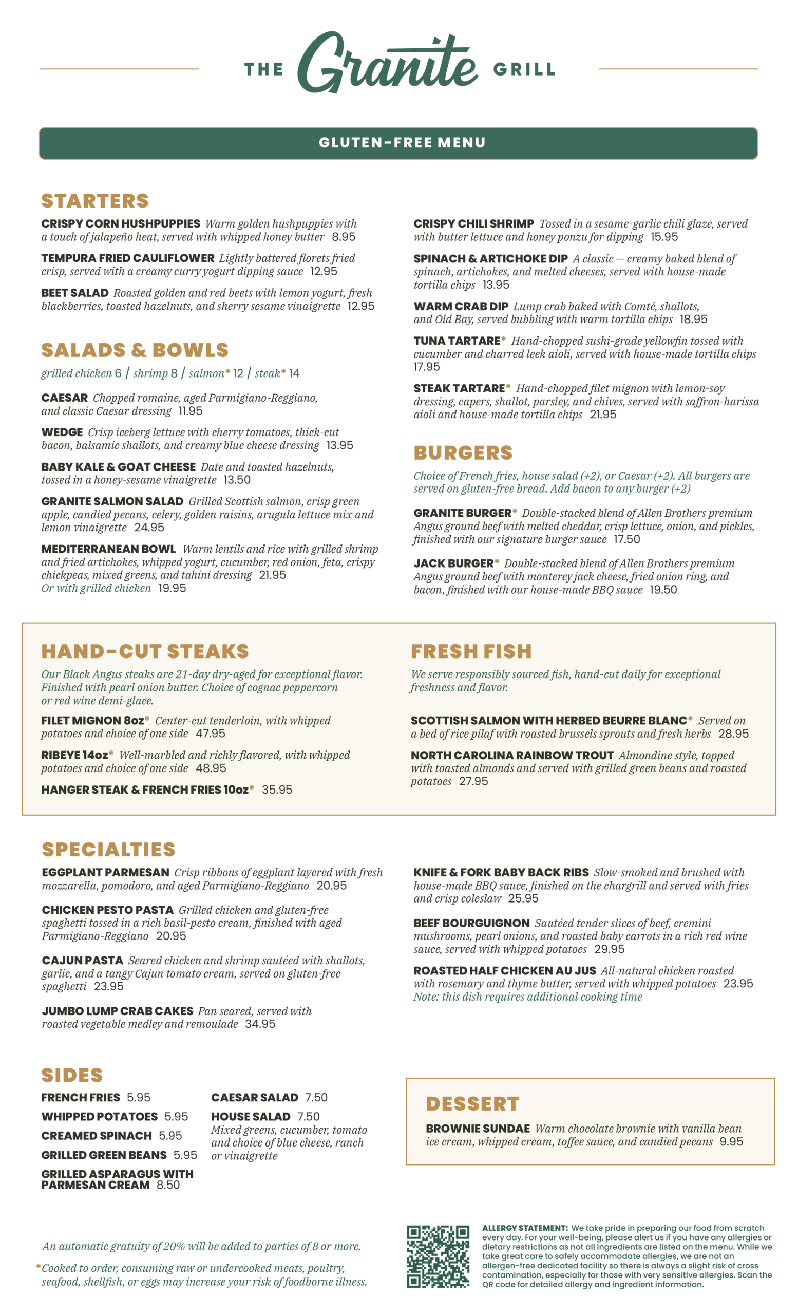 23.95Seared chicken and shrimp sautéed with shallots, garlic, and a tangy Cajun tomato cream, served on gluten-free spaghetti